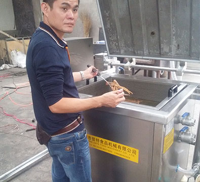 圓形全自動(dòng)電加熱油炸機(jī)現(xiàn)場 油炸機(jī)的特點(diǎn):本機(jī)主體使用SUS304不銹鋼制作。本機(jī)采用公轉(zhuǎn)與自轉(zhuǎn)同步的攪拌方...